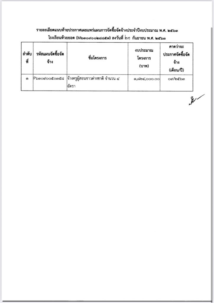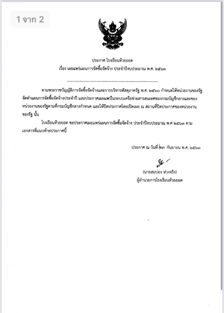ประกาศโรงเรียนห้วยยอด เรื่อง เผยแพร่แผนการจัดซื้อจัดจ้าง ประจำปีงบประมาณ 2563