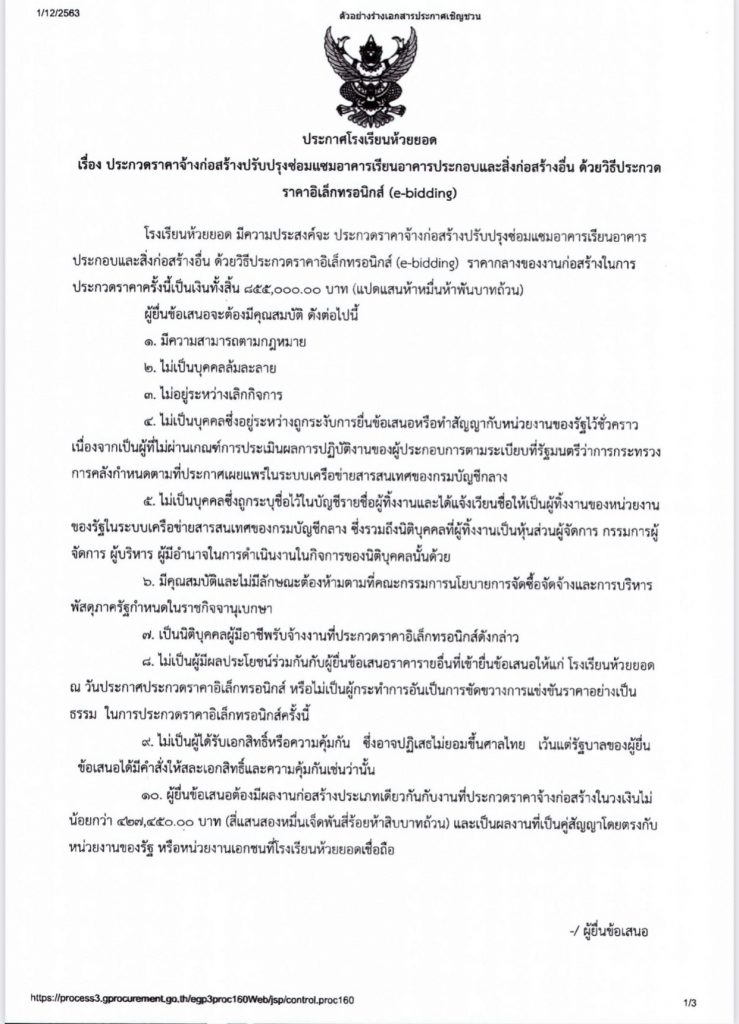 ประกาศโรงเรียนห้วยยอด เรื่อง ประกวดราคาจ้างก่อสร้างปรับปรุงซ่อมแซมอาคารเรียนอาคารประกอบและสิ่งก่อสร้างอื่นๆ ด้วยวิธีการประกวดราคาอิเล็กทรอนิกส์ (e-bidding)