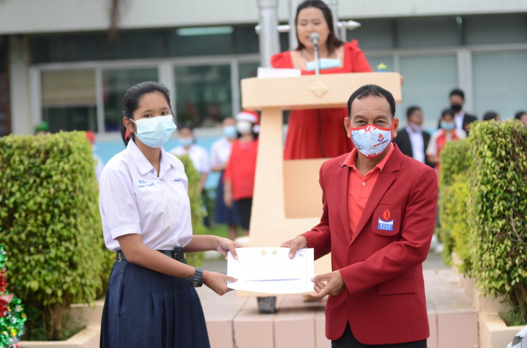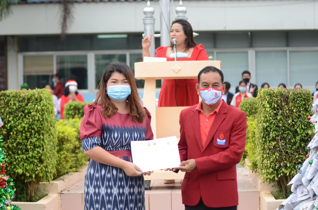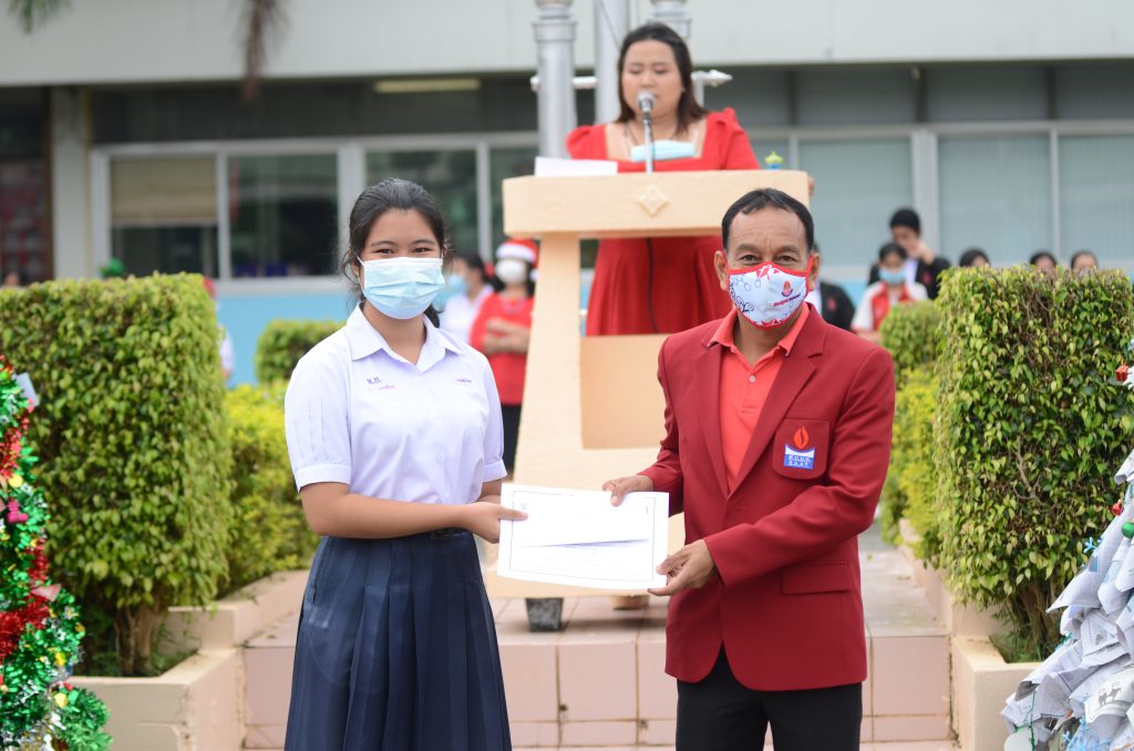 วันที่ 25 ธันวาคม 2563 นายสมปอง ห่วงจริง ผู้อำนวยการโรงเรียน มอบเกียรติบัตรและทุนการศึกษาให้แก่นักเรียนที่มีจิตอาสาพัฒนาผลิตภัณฑ์แวววับจนเป็นที่นิยมและได้รับรางวัลจากประกวดแข่งขันในระดับประเทศภายใต้โครงการเสริมสร้างคุณธรรม จริยธรรมและธรรมาภิบาลในสถานศึกษา (โครงการโรงเรียนสุจริต) ระดับประเทศ