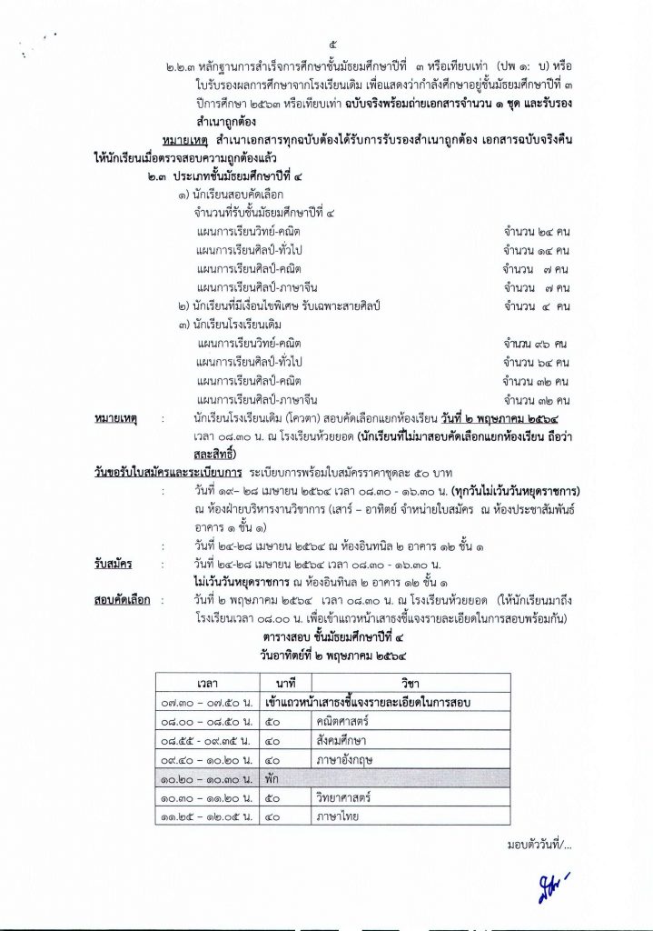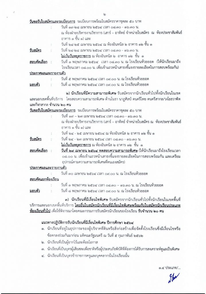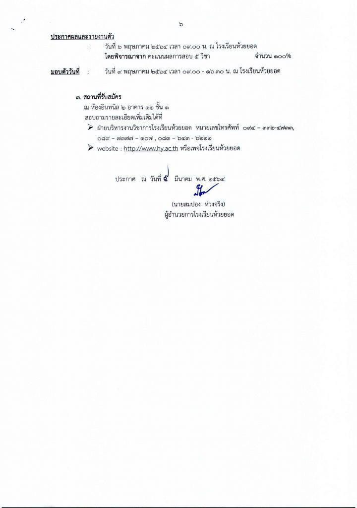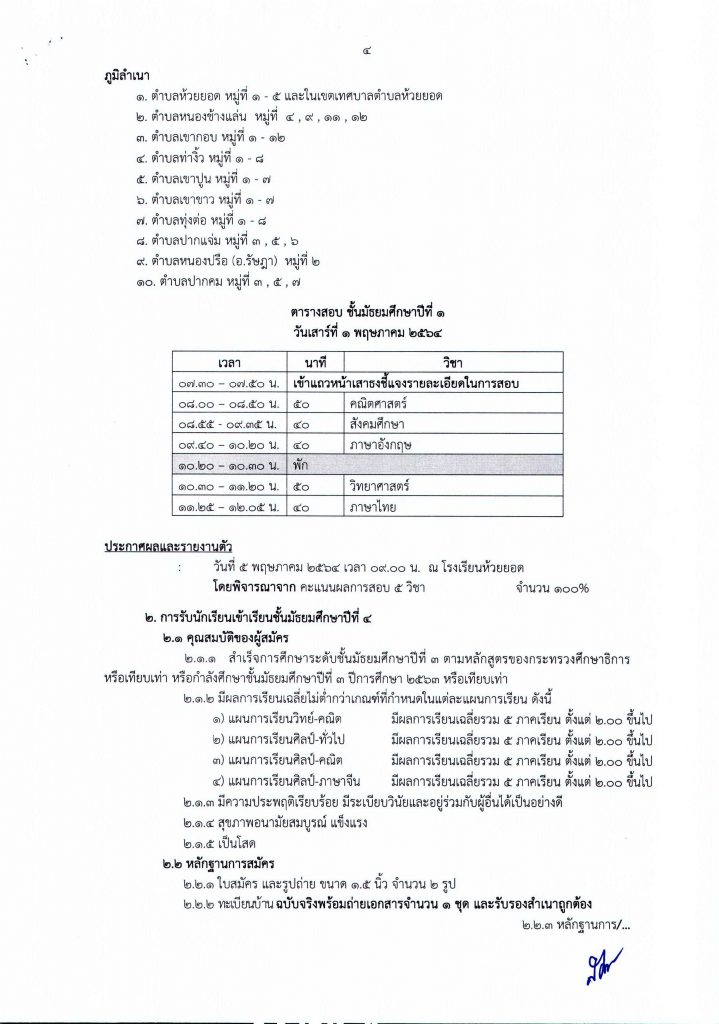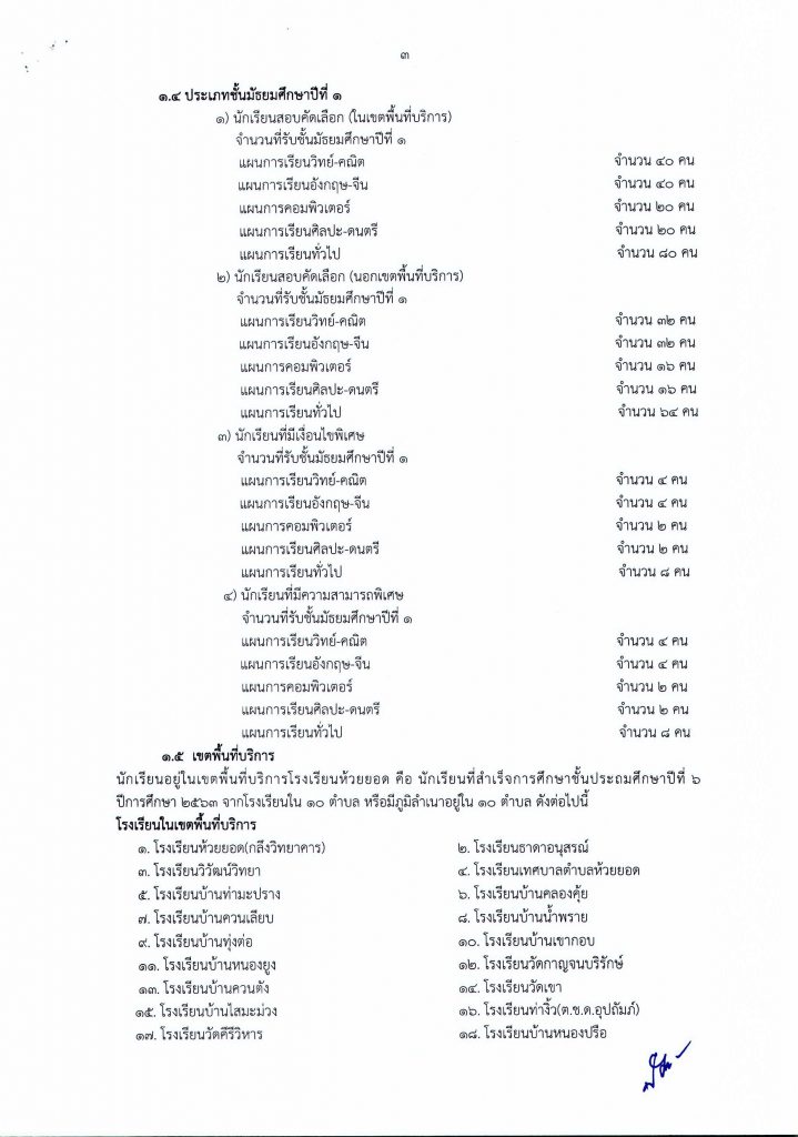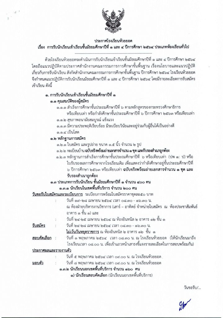 ประกาศโรงเรียนห้วยยอด เรื่องการรับนักเรียนชั้นมัธยมศึกษาปีที่ 1 และ 4 ปีการศึกษา 2564 ประเภทห้องเรียนทั่วไป