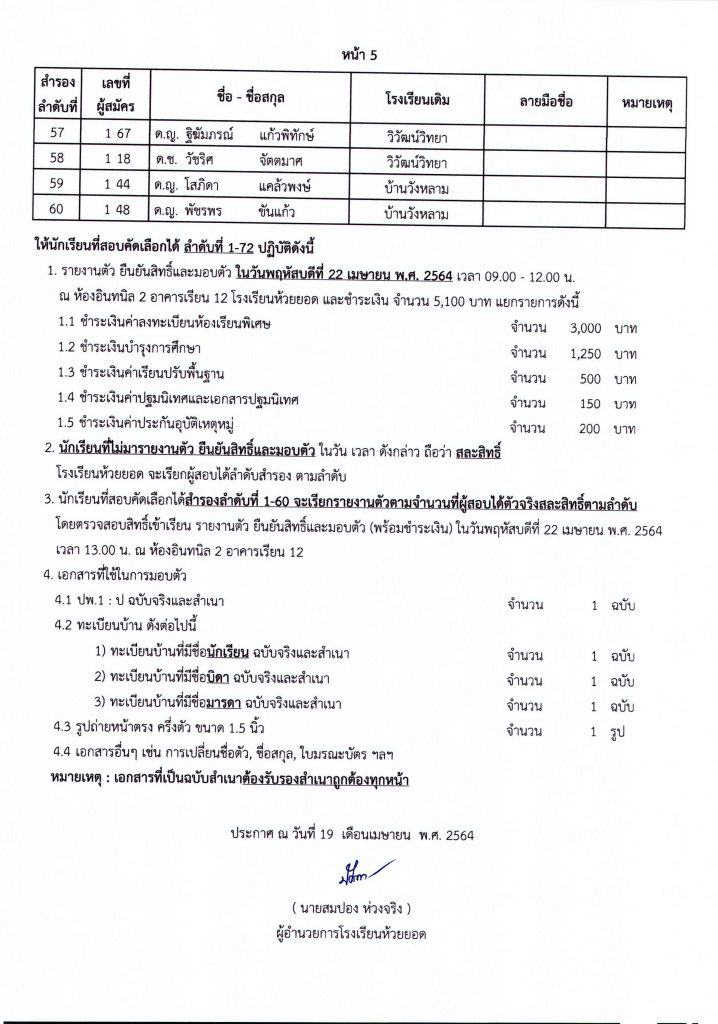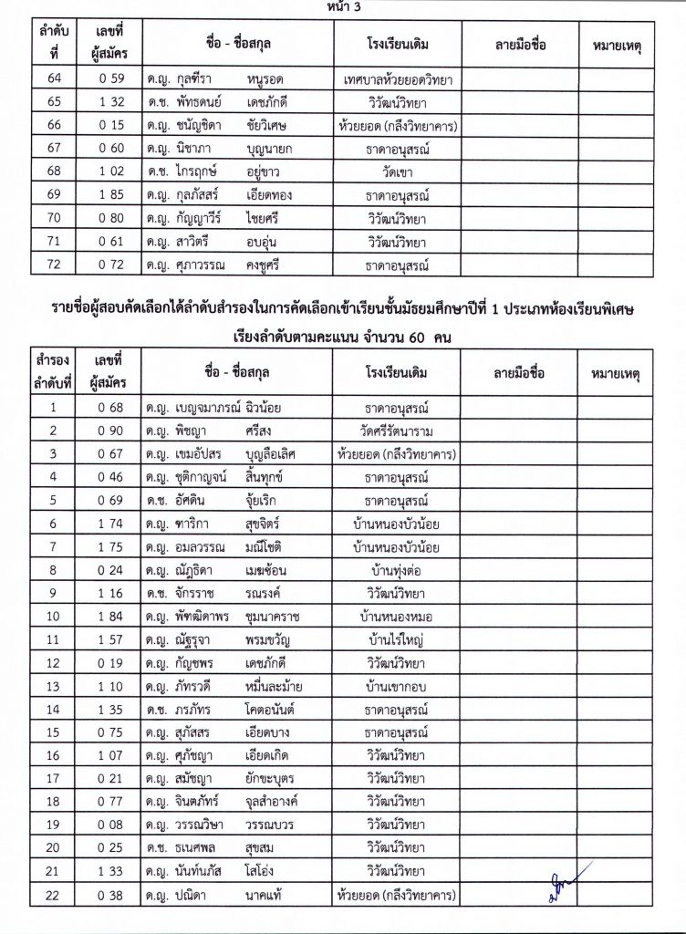 สำหรับสำรอง!!! ทางโรงเรียนจะติดต่อโดยการโทรศัพท์ รายงานตัวตามจำนวนตัวจริงสละสิทธิ์!!!ตามลำดับ ***เพื่อผลประโยชน์ของตนเองอ่านท้ายประกาศแล้วปฏิบัติตามนั้น
