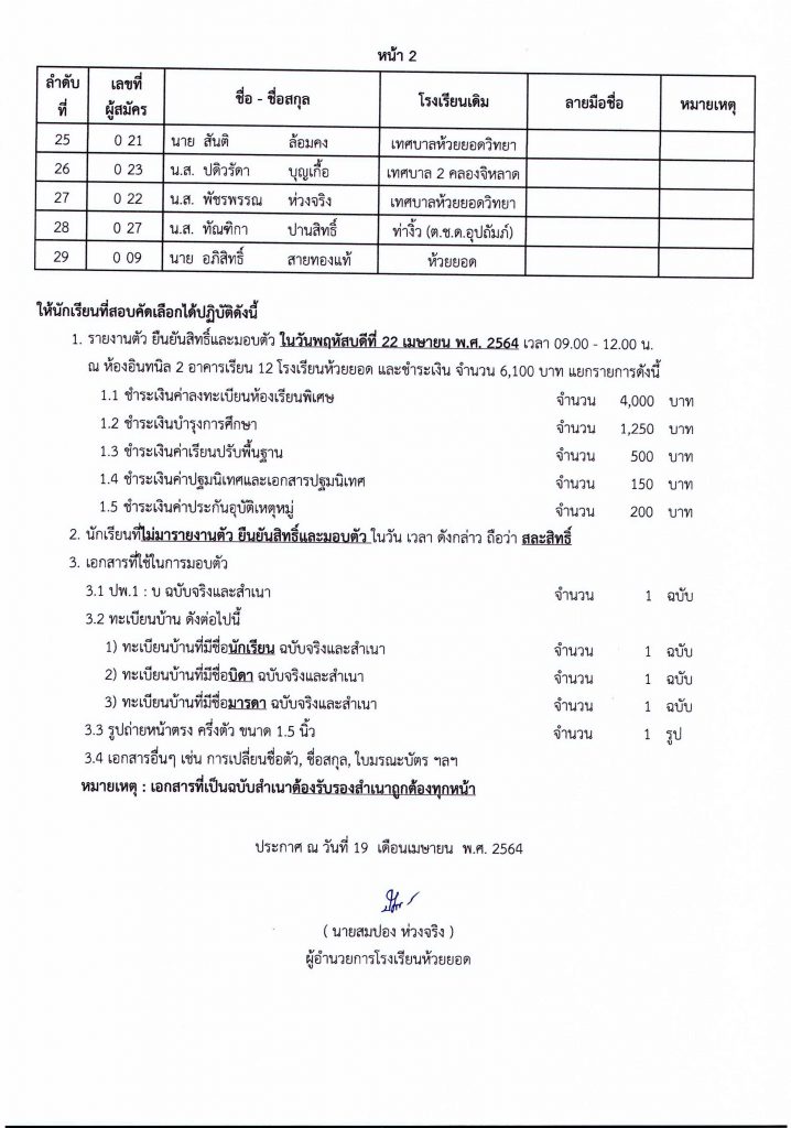 วันรายงานตัว/ยืนยันสิทธิ์/มอบตัววันที่ 22 เม.ย.2564 เวลา 09.00-12.00น.