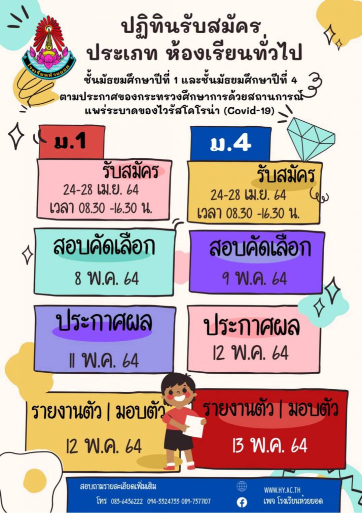 โรงเรียนแจ้งเลื่อนกำหนดการรับนักเรียน ม.1 และ 4 ปีการศึกษา 2564 ประเภททั่วไป