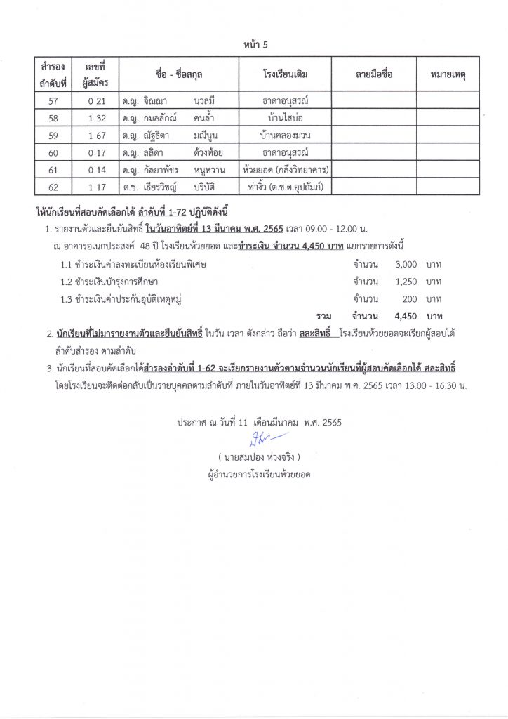 ตามที่โรงเรียนห้วยยอดดำเนินการจัดสอบคัดเลือกนักเรียนเพื่อเข้าศึกษาต่อประเภทห้องเรียนพิเศษ ชั้นมัธยมศึกษาปีที่ 1 ปีการศึกษา 2565 ตามนโยบายและแนวปฏิบัติเกี่ยวกับการรับนักเรียนสังกัดสำนักงานคณะกรรมการการศึกษาขั้นพื้นฐาน ปี 2565 ว่าด้วยโรงเรียนที่จัดห้องเรียนพิเศษ โดยสอบคัดเลือกในวันอาทิตย์ที่ 6 มีนาคม 2565 ปรากฏผลการสอบคัดเลือกตามประกาศ ตรวจสอบรายชื่อและศึกษาแนวปฏิบัติอย่างเคร่งครัด