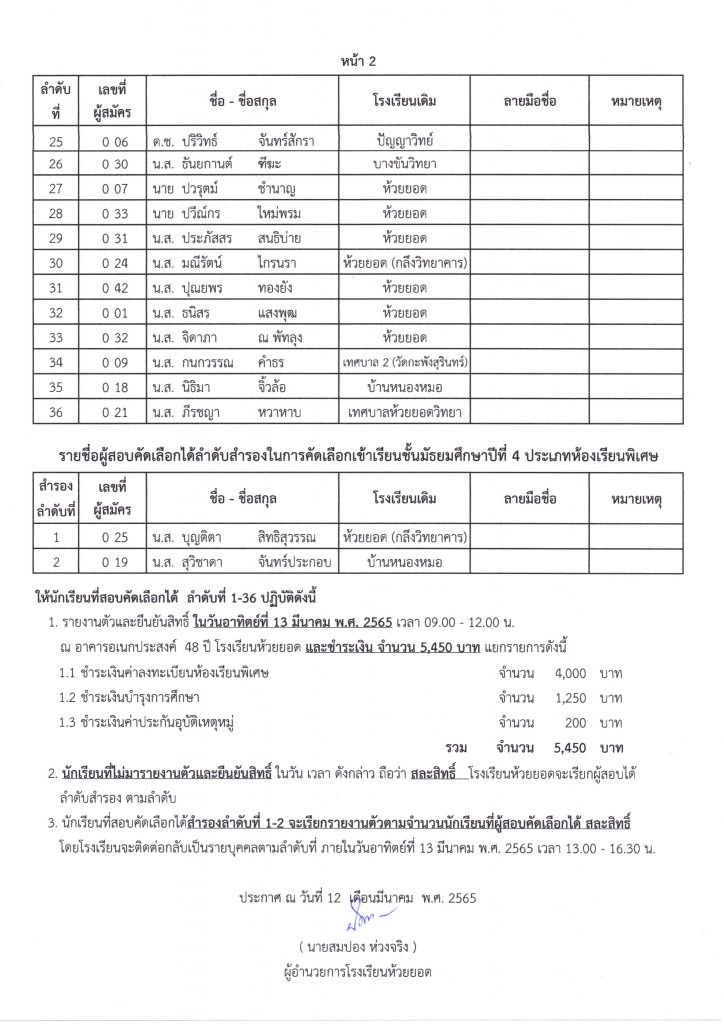 มการการศึกษาขั้นพื้นฐาน ปี 2565 ว่าด้วยโรงเรียนที่จัดห้องเรียนพิเศษ โดยสอบคัดเลือกในวันจันทร์ที่ 7 มีนาคม 2565 ปรากฏผลการสอบคัดเลือกตามประกาศ