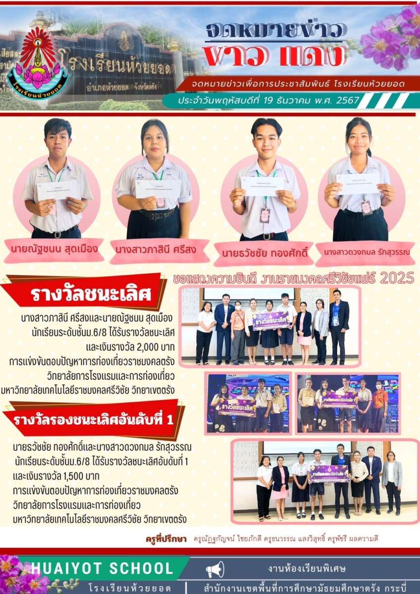 โรงเรียนห้วยยอดขอแสดงความยินดีที่ได้รับรางวัลในการแข่งขันทักษะทางวิชาการงานราชมงคลศรีวิชัยแฟร์ 2025
