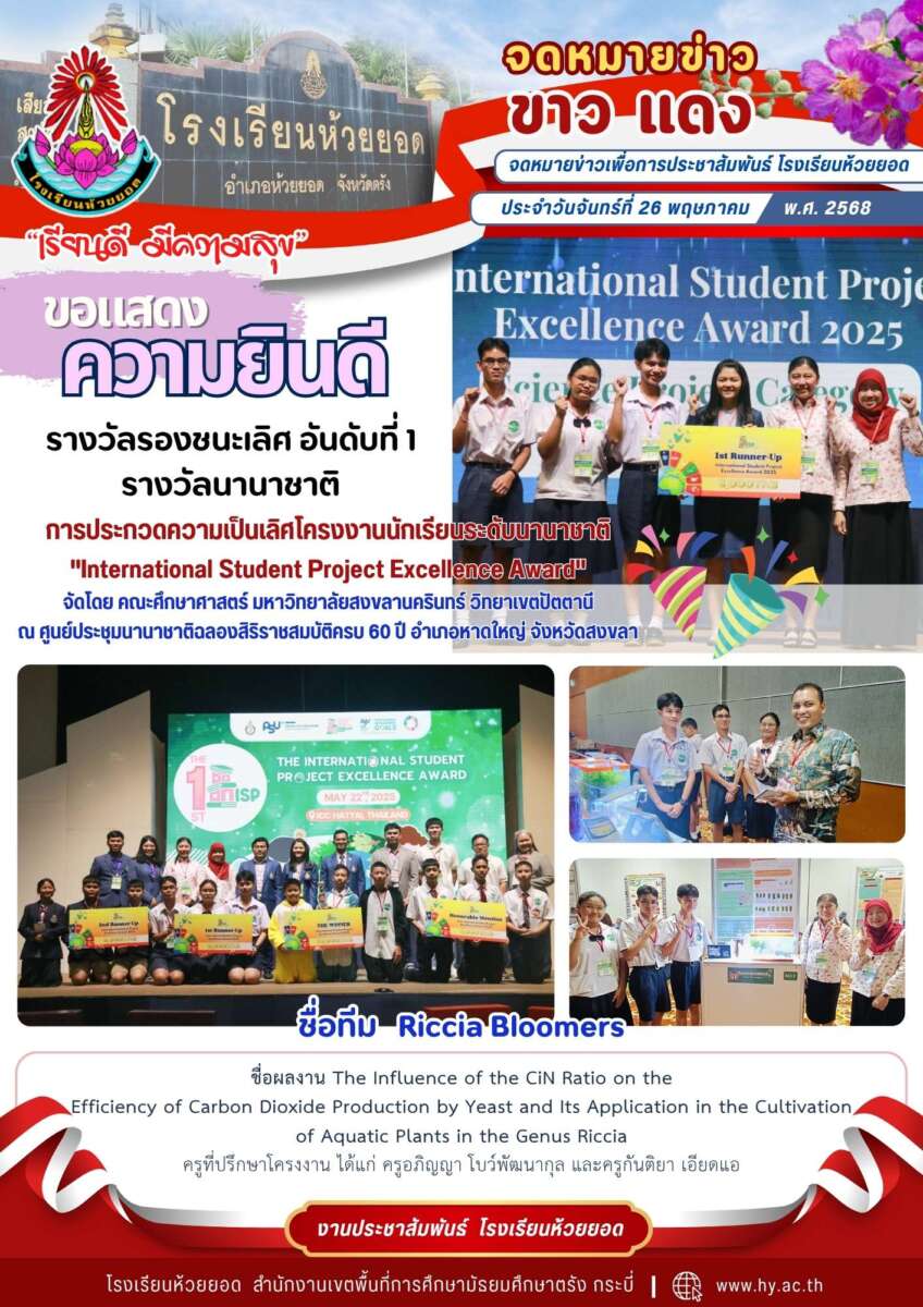 ขอแสดงความยินดีกับนักเรียนได้รับรางวัลรองชนะเลิศ อันดับที่ 1 ระดับนานาชาติ