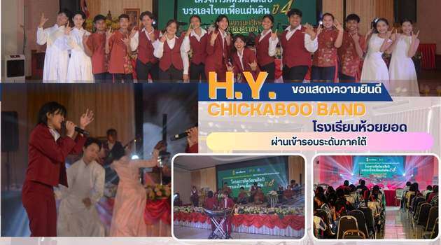 ขอแสดงความยินดี H.Y. CHICKABOO BAND โรงเรียนห้วยยอด ผ่านเข้ารอบระดับภาคใต้ การประกวดวงดนตรีสากลร่วมสมัย”คีตวัฒนศิลป์ บรรเลงไทยเพื่อแผ่นดิน” ปีที่ 4