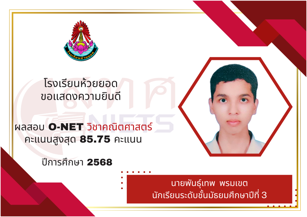 กลุ่มบริหารวิชาการข่าวอินทนิลลือเลื่องข่าวเด่น การทดสอบทางการศึกษาระดับชาติขั้นพื้นฐาน (O-NET) ม.3 ปีการศึกษา 2568 12 มีนาคม 2026 admin Share this: Share on Facebook (Opens in new window) Facebook Share on X (Opens in new window) X