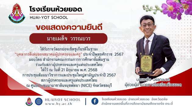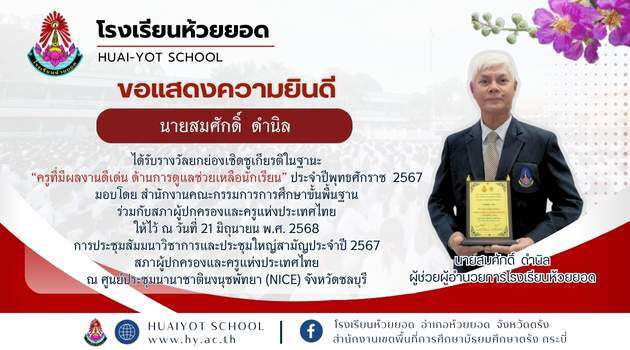 Read Moreรางวัลยกย่องเชิดชูเกียรติในฐานะ “ครูที่มีผลงานดีเด่น ด้านการดูแลช่วยเหลือนักเรียน” ประจำปีพุทธศักราช 2567