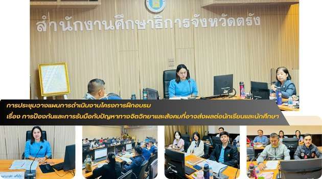 Read Moreในวันที่ 23 พฤษภาคม 2568 นางสาวจุฑารัตน์ พรศรีรัตน์ ตำแหน่ง ครู เข้าร่วมประชุมวางแผนการดำเนินงานโครงการฝึกอบรม เรื่อง การป้องกันและการรับมือกับปัญหาทางจิตวิทยาและสังคมที่อาจส่งผลต่อนักเรียนและนักศึกษา ณ ห้องประชุมสำนักงานศึกษาธิการจังหวัดตรัง