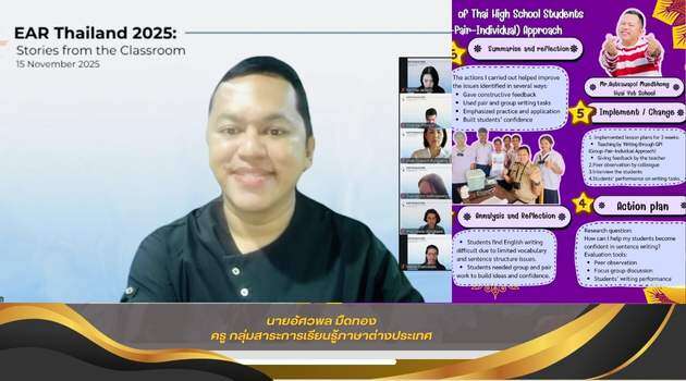 Read Moreวันที่ 15 พฤศจิกายน 2568 นายอัศวพล มืดทอง นำเสนอผลงานวิจัยในรูปแบบออนไลน์ในหัวข้อ “Enhancing English Writing Skills of Thai High School Students through the GPI (Group–Pair–Individual) Approach”